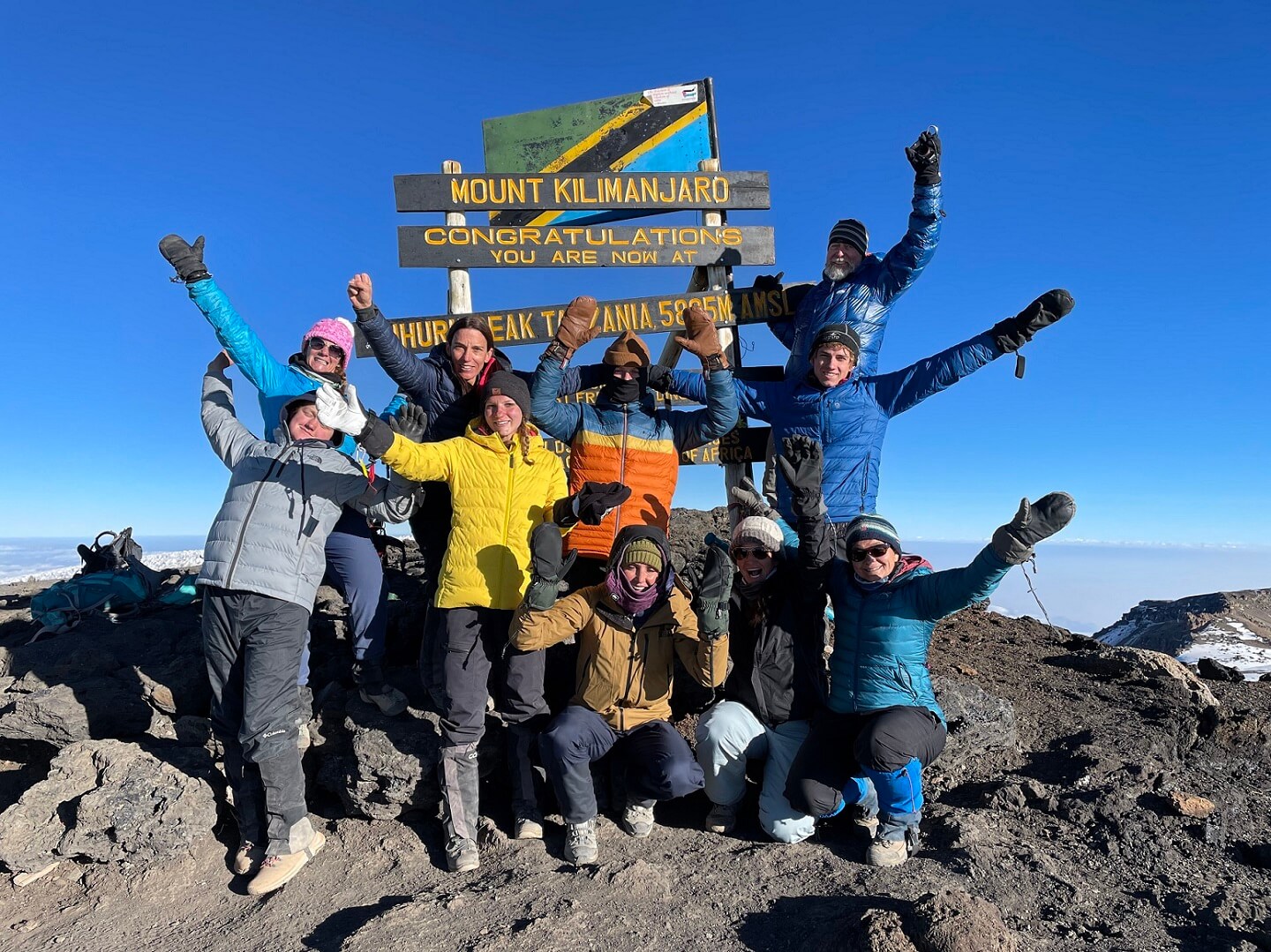 Your summit attempt begins around midnight. The climb to Gilman’s Point (5,685m) is tough, with steep switchbacks and loose scree, making it the most difficult part of the ascent. Reaching Gilman’s Point at dawn allows for a breathtaking sunrise. From here, you will follow the crater rim to reach Uhuru Peak, the highest point in Africa at 5,895m. After celebrating at the summit, you will begin your descent, first returning to Kibo Huts for a short rest and meal, and then continuing down to Horombo Huts.